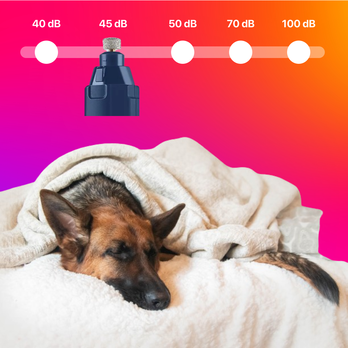 The grinder is very quiet for a grinder and has plenty of power. I was taking her to the vet to get her nails cut which was getting expensive. I introduced my dog to the grinder using treats. Now she is very relaxed and seems to enjoy her pedicures! 100% highly recommend!